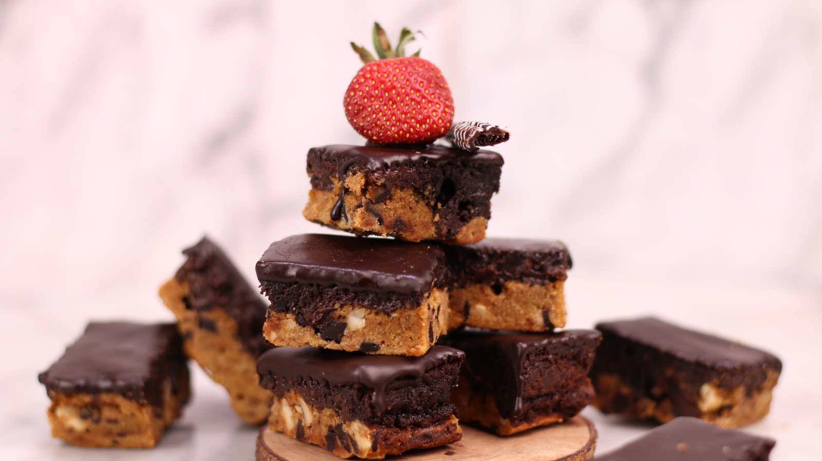 Bentuk bulatan kecil atau pipihkan, lalu tata di atas adonan brownies. - Panggang: