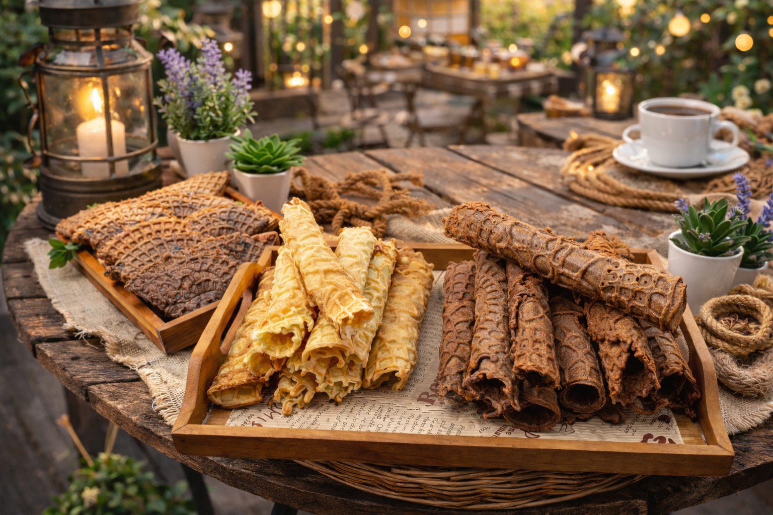 5. Setelah mulai berwarna cokelat digulung dengan sumpit atau bambu kecil yang sudah disiapkan dan dinginkan.
